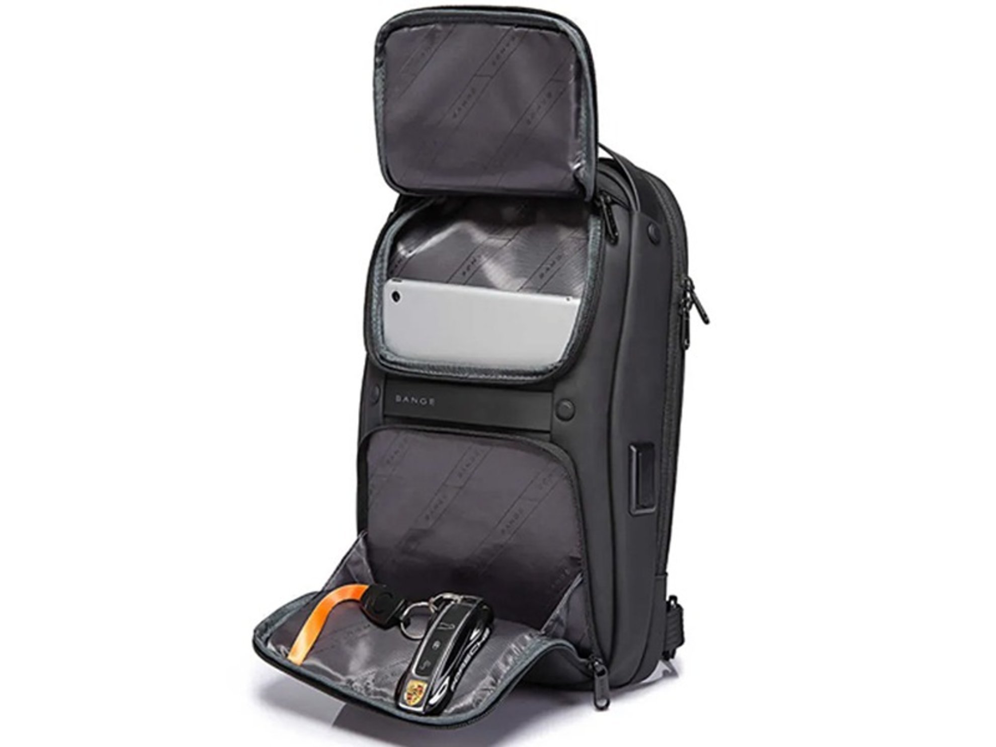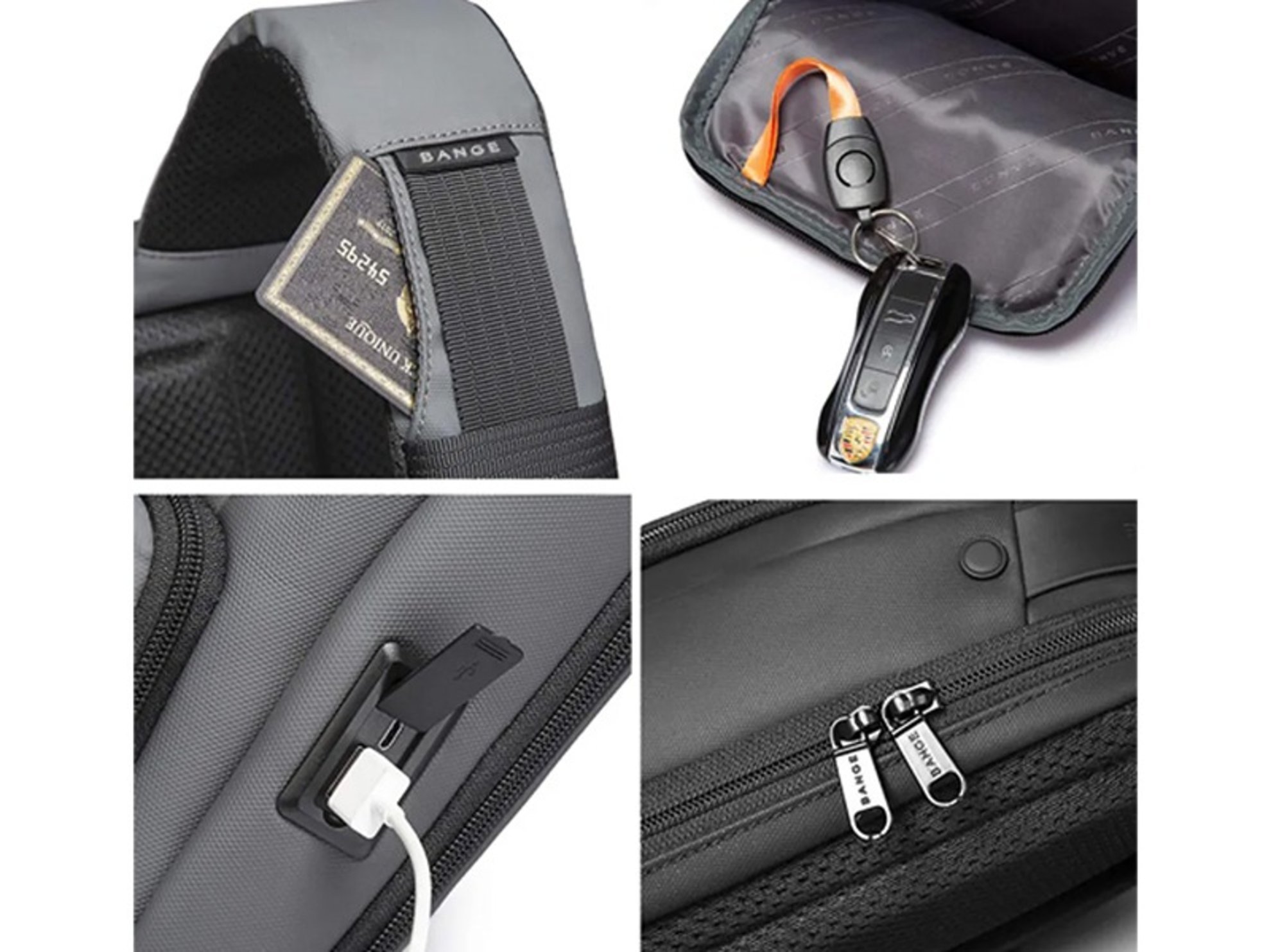 اين بادي بگ داراي پورت هاي USB ميباشد . داراي محفظه ي جدا گانه براي تب لت است .داراي جاي كليدي جدا شو ميباشد و روي بند بادي بگ داراي جاي كارتي ميباشد و پشت و بند اين بادي بگ ضد تعريق و طبي ميباشد. همچنين تقسيم بندي هاي زيادي دارد .