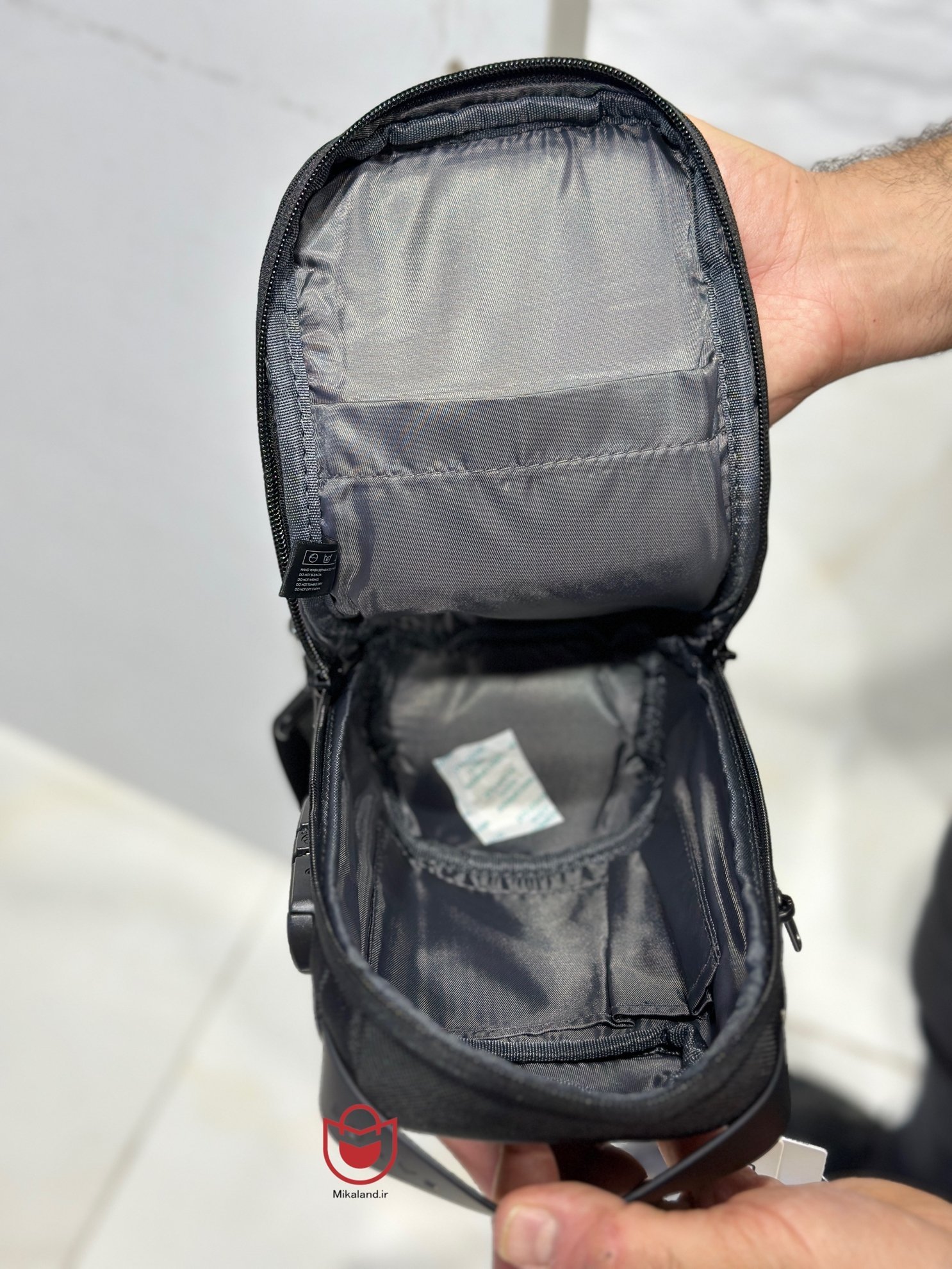 دارای دسته آویز، زیپها بصورت زیر زیپ و مقاوم در برابر نفوذ آب، بند و پشت محصول ضد تعریق، بند قابل تنظیم ، قابل استفاده در هر دو سمت راست و چپ داراي جاي كارتي روي بند اين كار