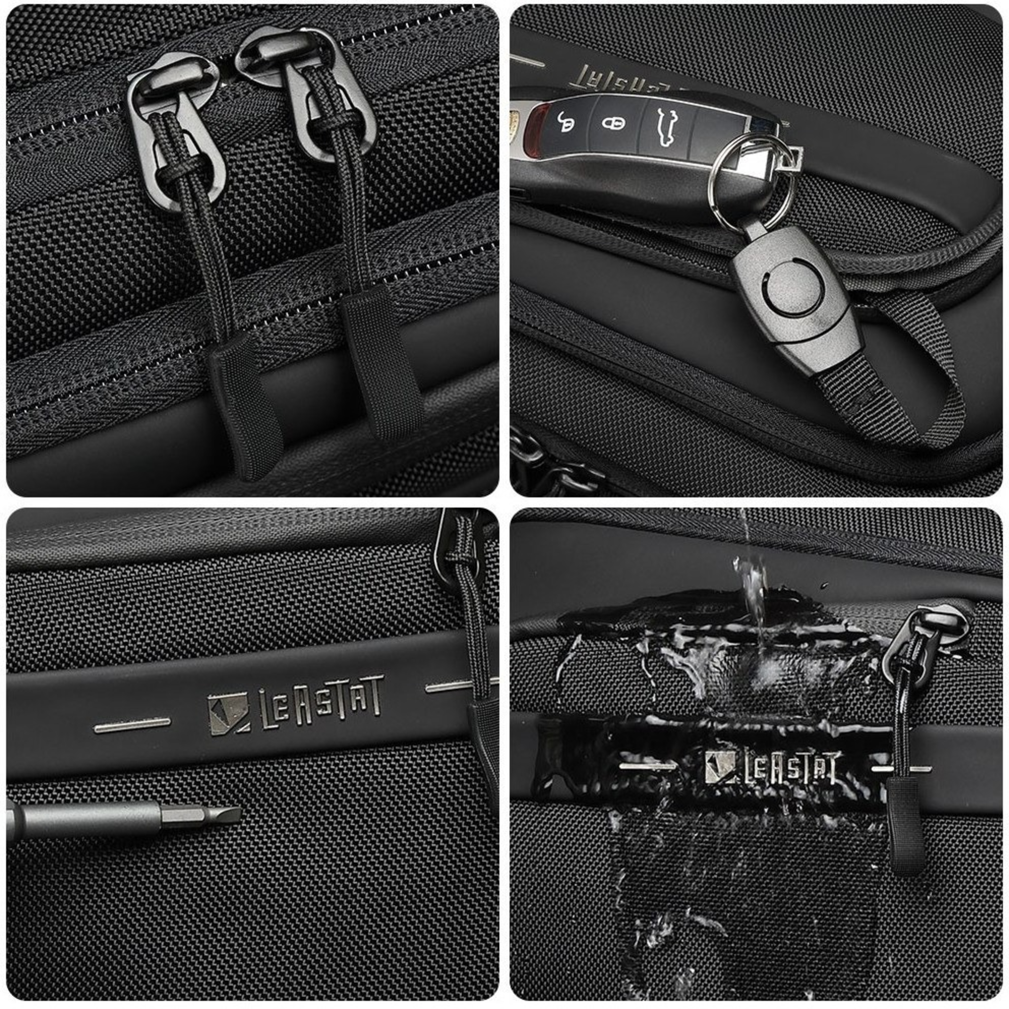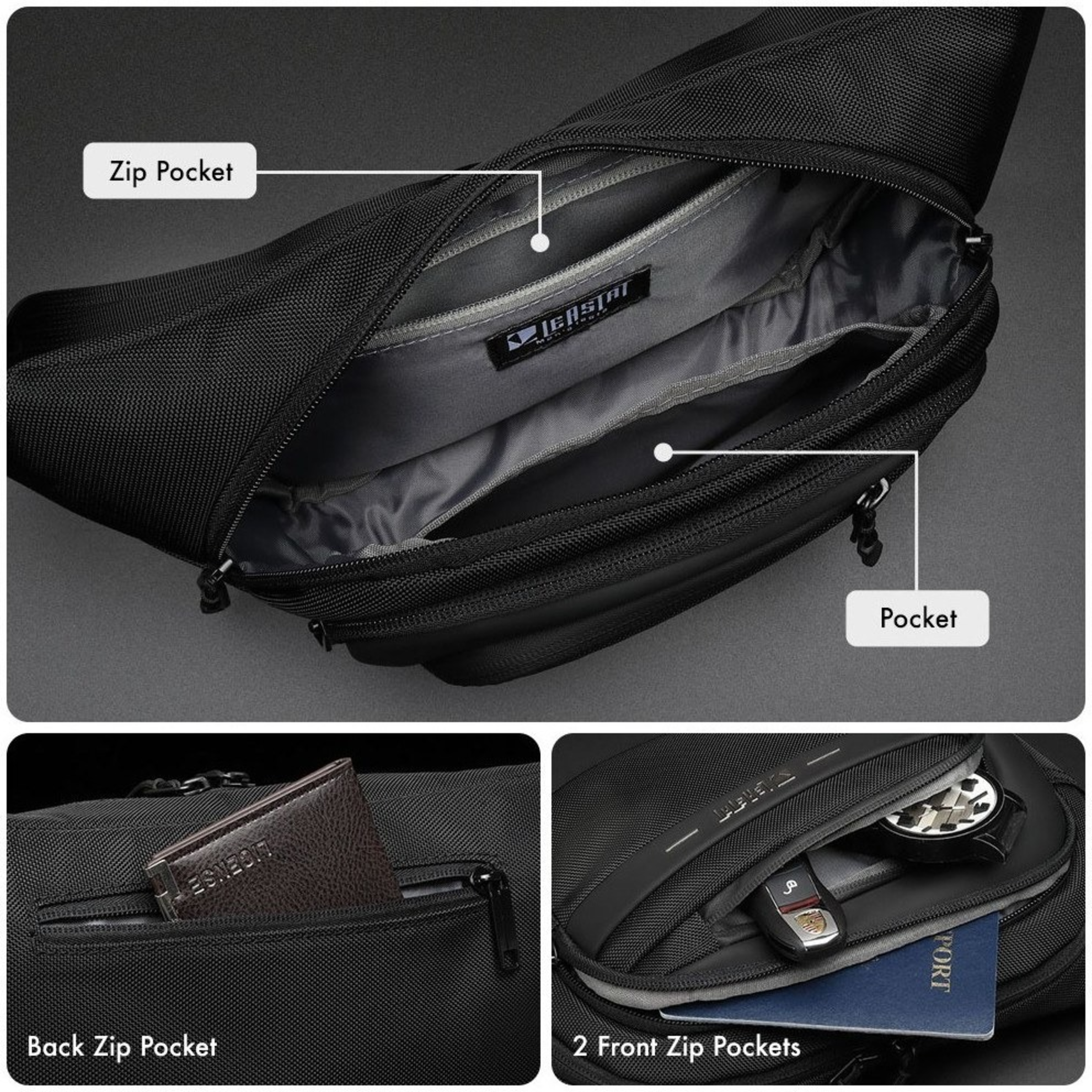 دارای جاکلیدی جداشو، زیپها بصورت زیر زیپ و مقاوم در برابر نفوذ آب، بند قابل تنظیم ، استفاده دو کاره هم بصورت بادی بگ هم کیف کمری