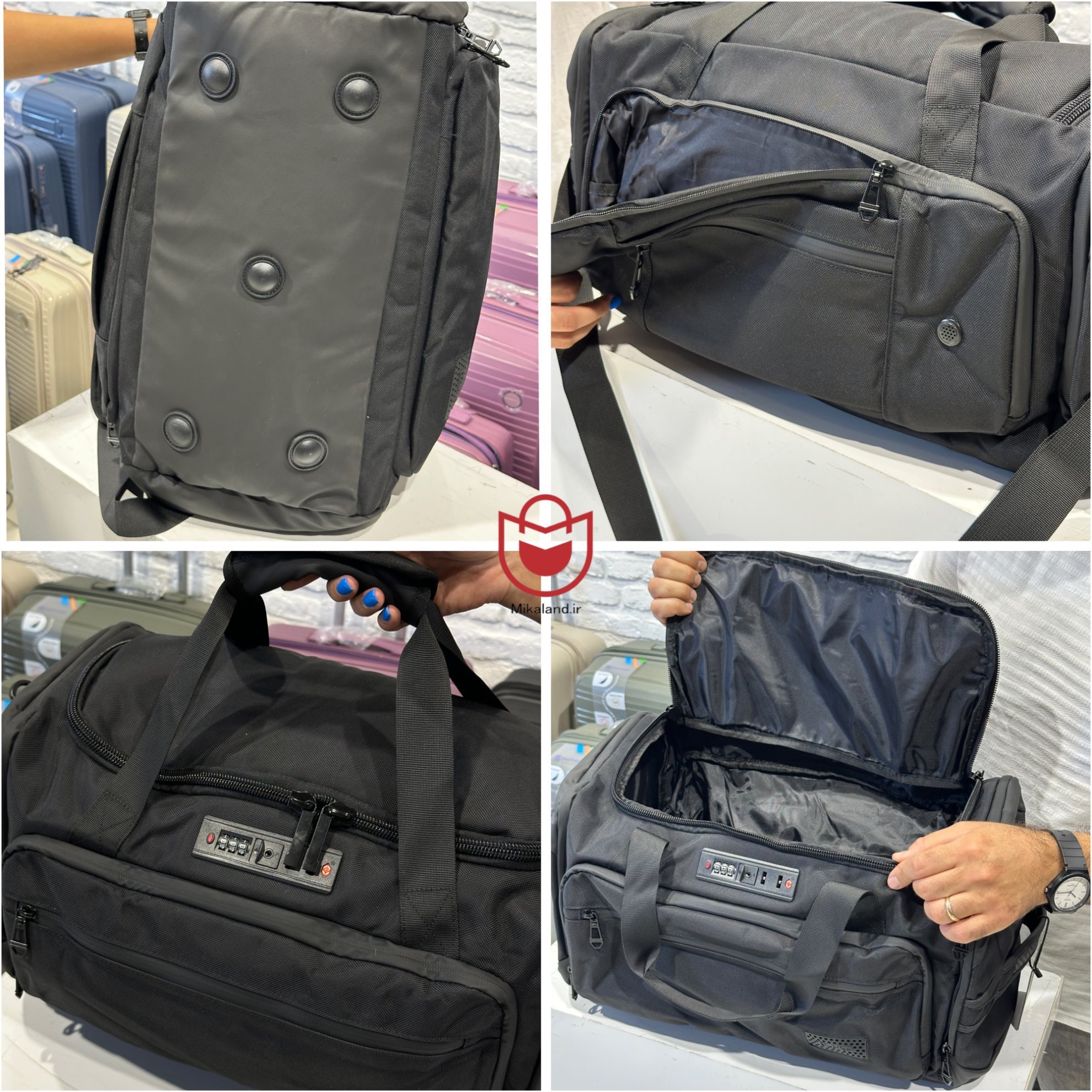 اين ساك ورزشي هم به صورت كوله شو هم به صورت دستي و هم به صورت رو دوشي قابل استفاده است و بند اين كار قابل تنظيم ميباشد.داراي قفل TSA ميباشد . بند اين كار طبي ميباشد . يك طرف اين ساك داراي محفظه ي جداگانه براي لباس خيس و طرف ديگر داراي جاي كفش ميباشد .قابليت اتصال رو چرخ دسته چمدان را دارد . زيپ ها به صورت زير زيپ و ضد آب ميباشد .