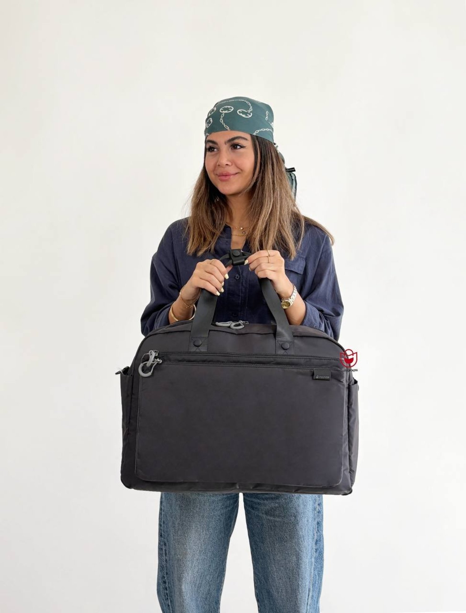 محفظه اصلی این محصول فضای زیادی برای وسایل دارد و در یک طرف آن یک جیب زیپ دار و دو جیب ساده و در طرف دیگر یک محفظه چسبی وجود دارد . در کناره های ساک جیب قرار دارد که مناسب برای قمقمه یا بطری آب میباشد. در جلوی ساک دو جیب زیپ دار وجود دارد همچنین در پشت ساک جیب زیپی دارد. جنس این محصول از پارچه پلی استر ضد آب میباشد که قابلیت شستشو در ماشین لباسشویی را دارد. وزن ساک 700 گرم میباشد که فوق العاده سبک است و راحتی استفاده را به ارمغان میاورد. در پشت ساک بند ترولی برای آویزان کردن به دسته چمدان وجود دارد. بر روی آستر داخلی برند فوور درج شده است که نشان دهنده اورجینال بودن کالا میباشد