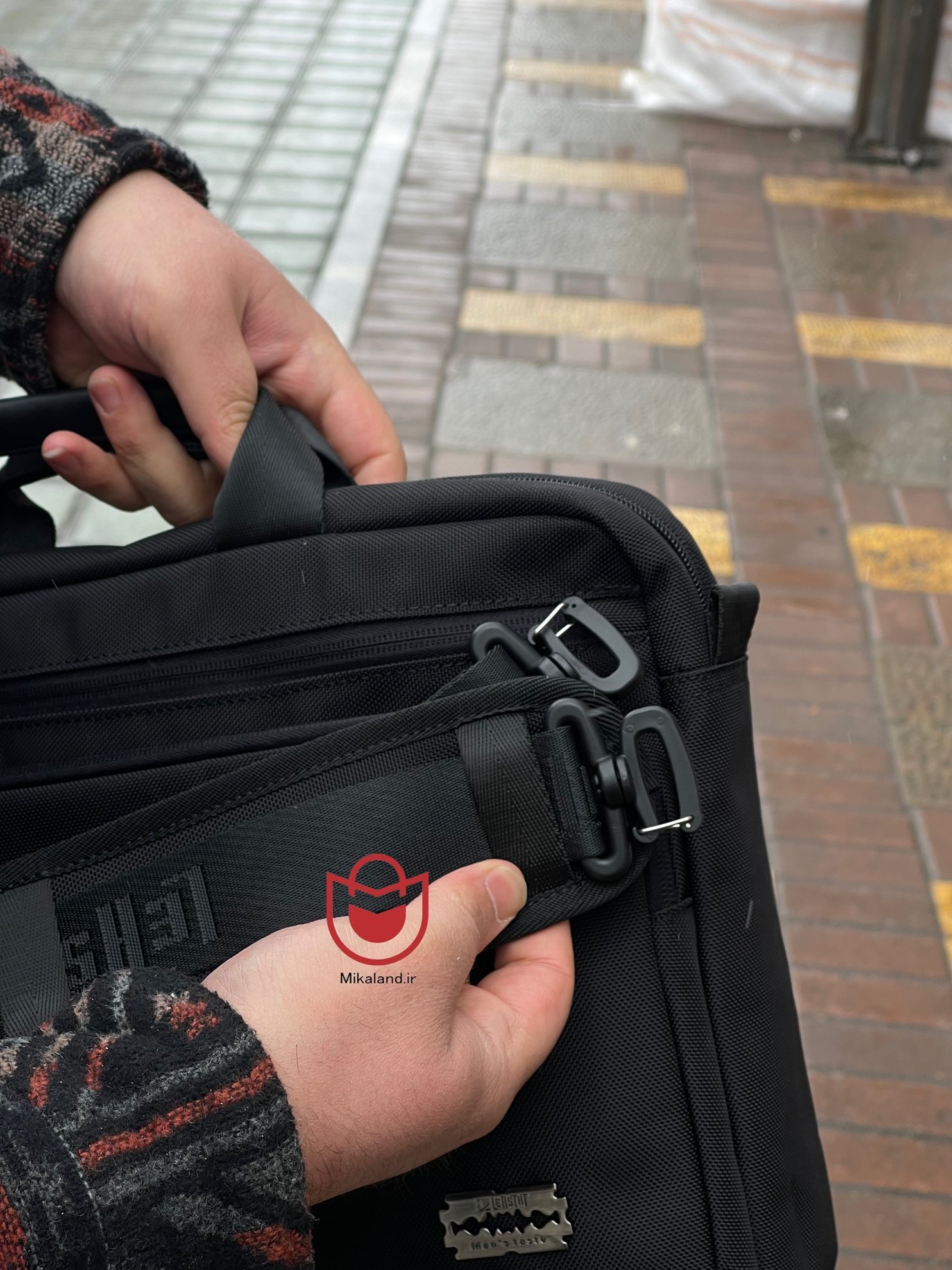 اين كيف اداري داراي جاي لپ تاپي تا سايز 15 اينچ را دارد. داخل كيف داراي جاي كليدي ميباشد . داراي بند رو دوشي و روي بند اين كار يك پد كه هم ضد تعريق است و هم طبي ميباشد . بند كار از كيف كامل جدا ميشود وبدون بند هم قابل استفاده ي دستي است .