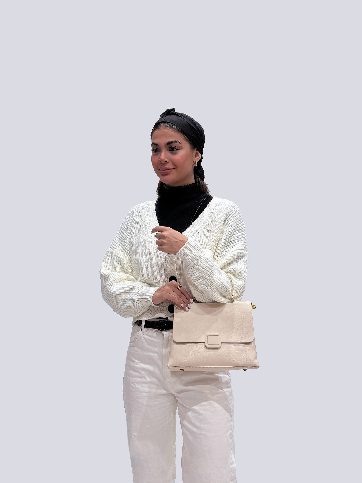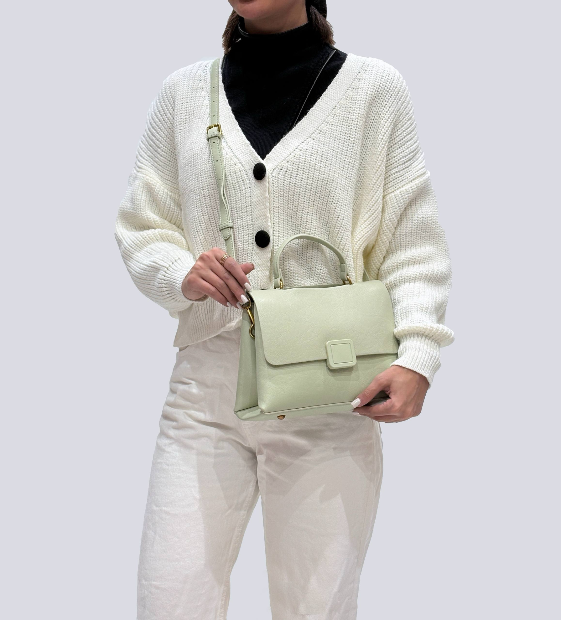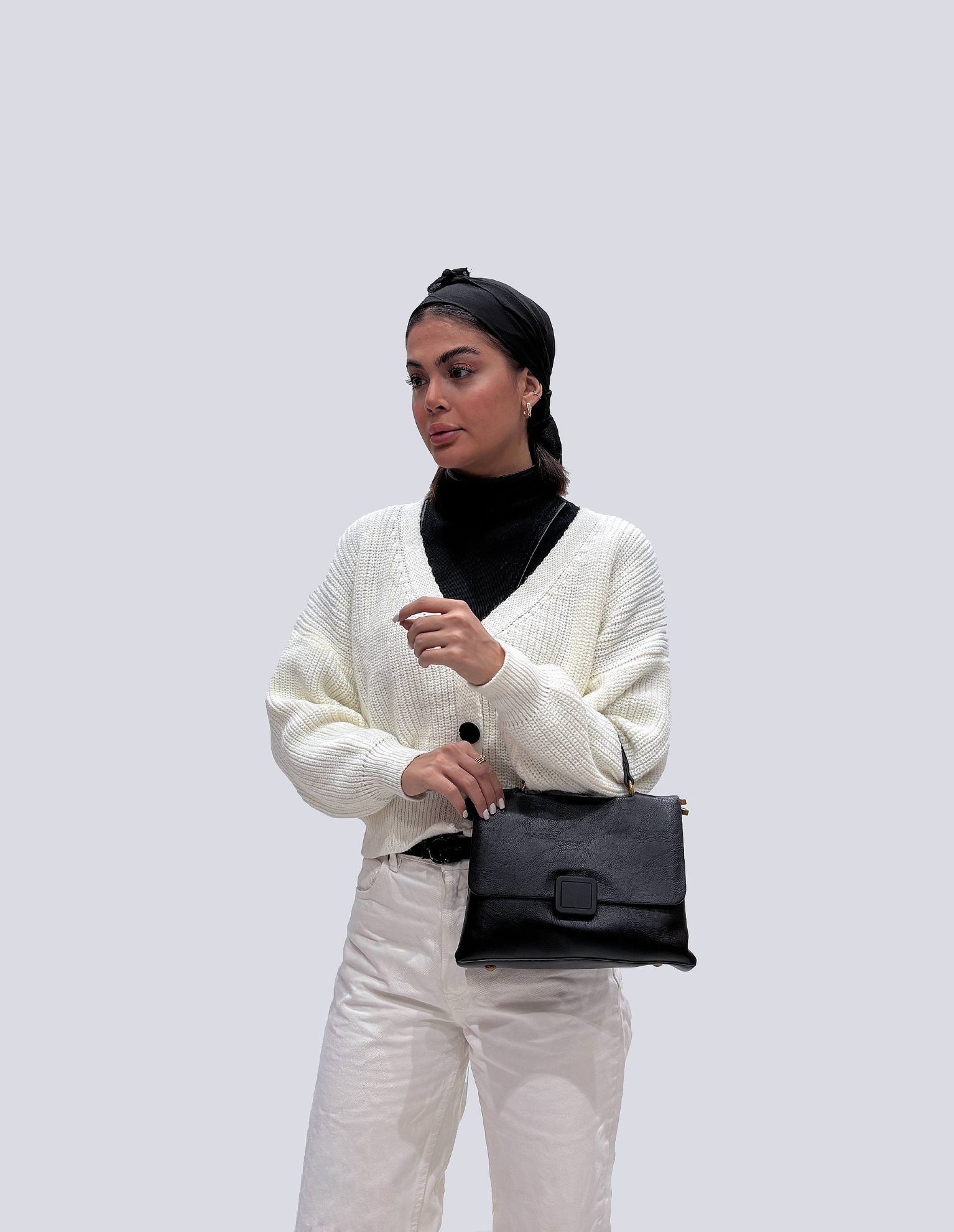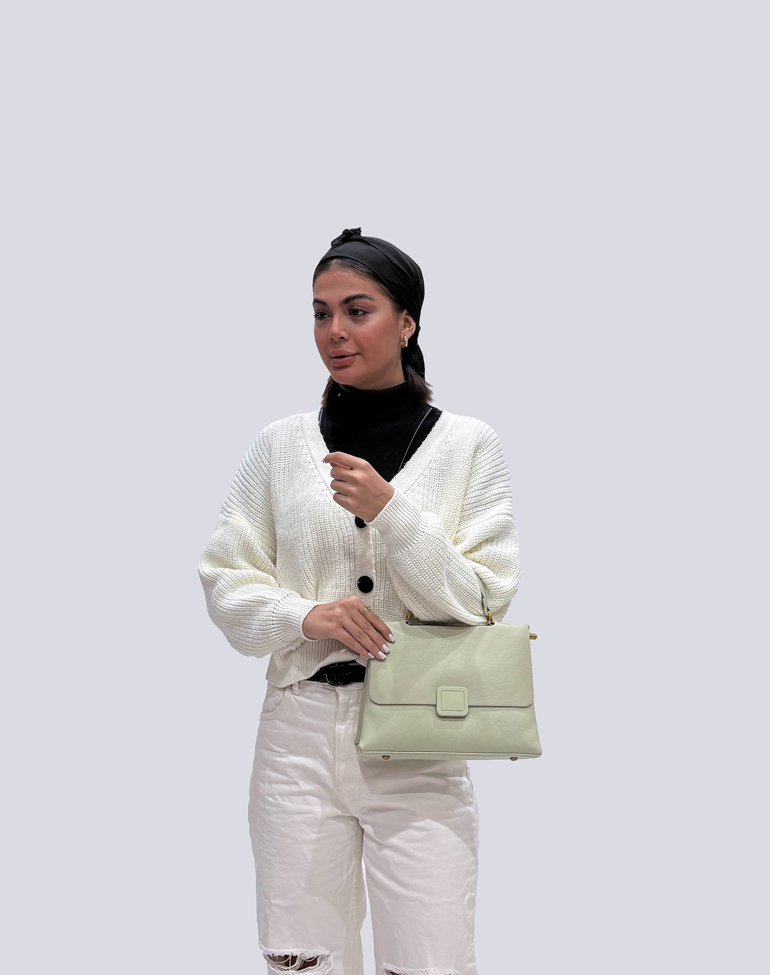 داراى يك بند دستى و يك بند بلند قابل تنظيم ميباشد.اين كيف به همراه يك آويز جاكليدى عروسكى( به صورت رندوم ) ميباشد.
