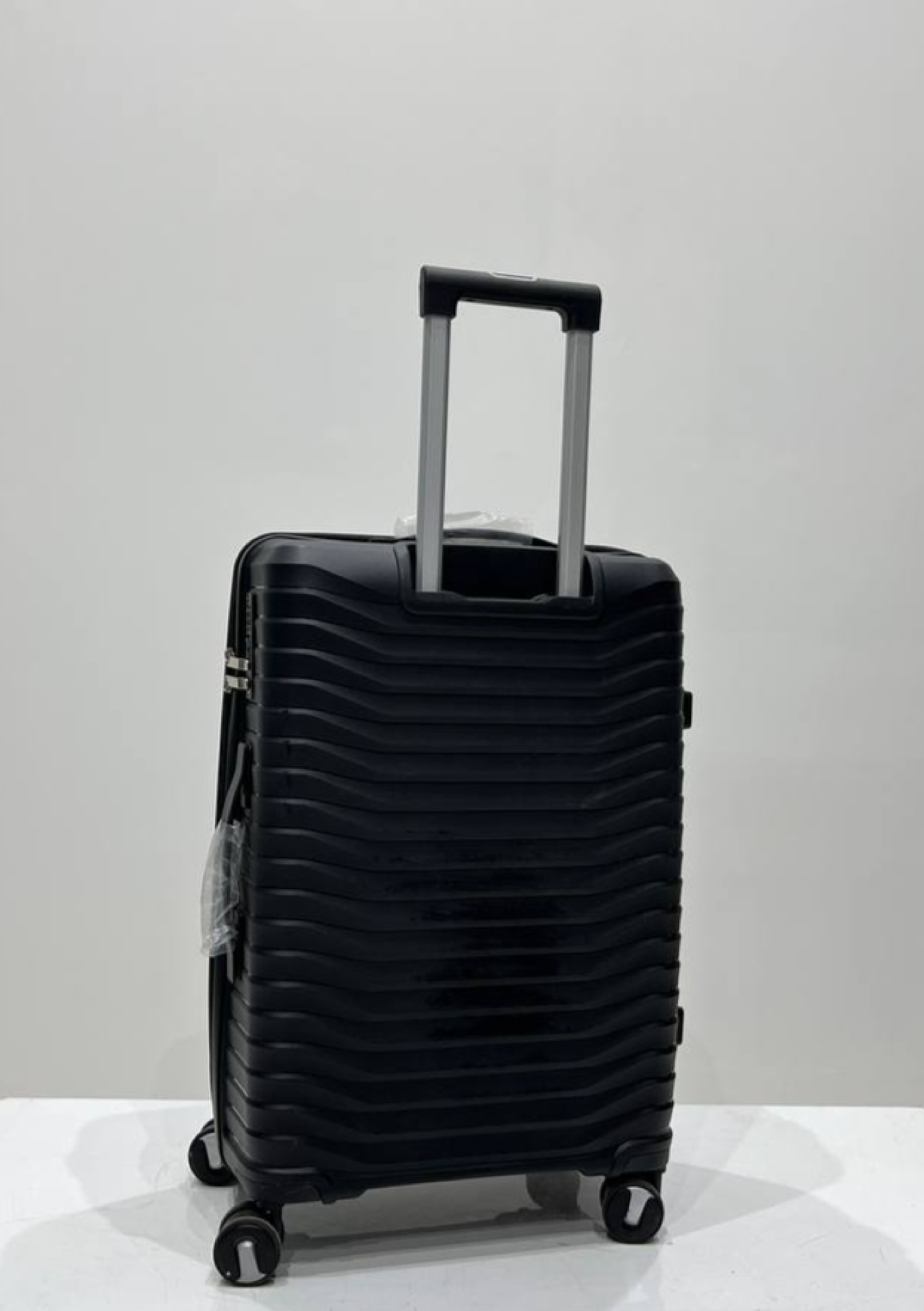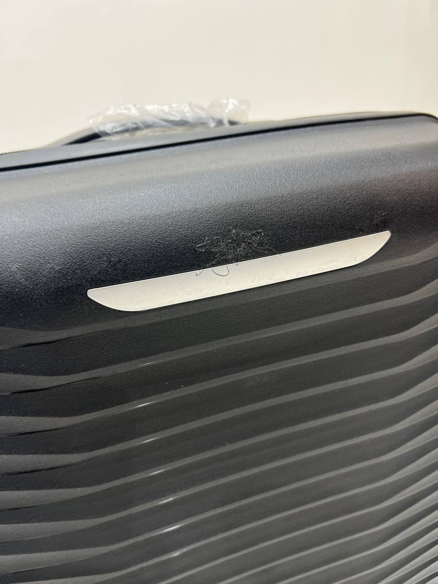 عکس محصولات با گوشی موبایل گرفته شده و هیچ ادیت روش انجام نشده ❌ ایراد ظاهری محصول: در قسمت جلوی چمدان کنار لوگو کمی خط وخش دارد❌