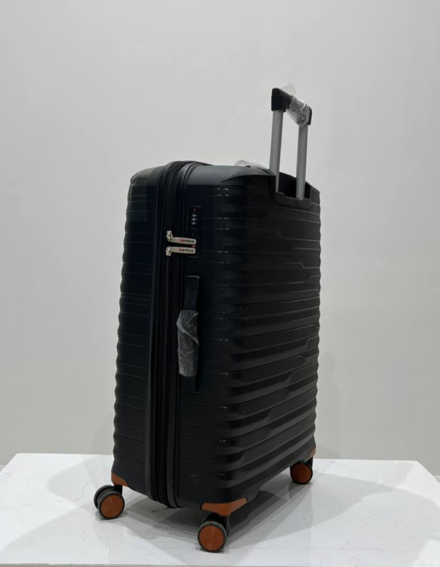 عکس محصولات با گوشی موبایل گرفته شده و هیچ ادیت روش انجام نشده ❌ ایراد ظاهری محصول: قسمت جلوی چمدان کمی قور شدگی دارد ❌