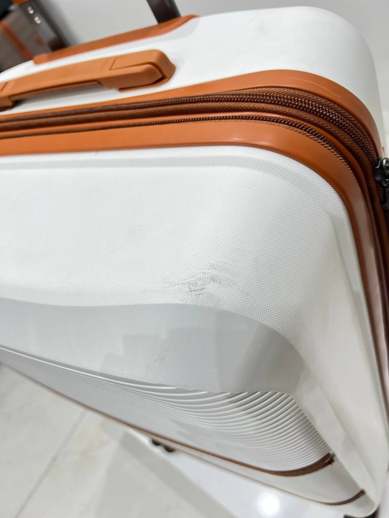 عکس محصولات با گوشی موبایل گرفته شده و هیچ ادیت روش انجام نشده ❌ ایراد ظاهری محصول: قسمتهایی از گوشه ی چمدان اسیب خراشیدگی دارد❌