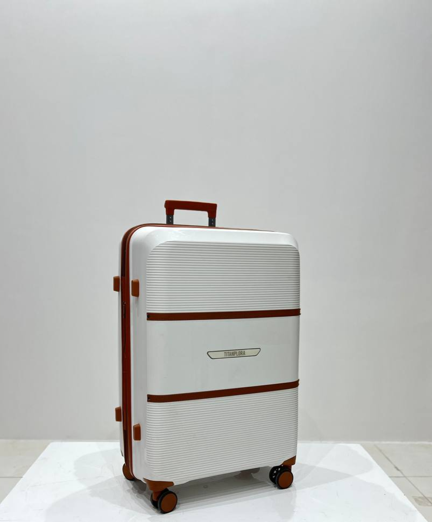 چمدان زده دار تیتان پلورا سایز بزرگ سفید شکلاتی