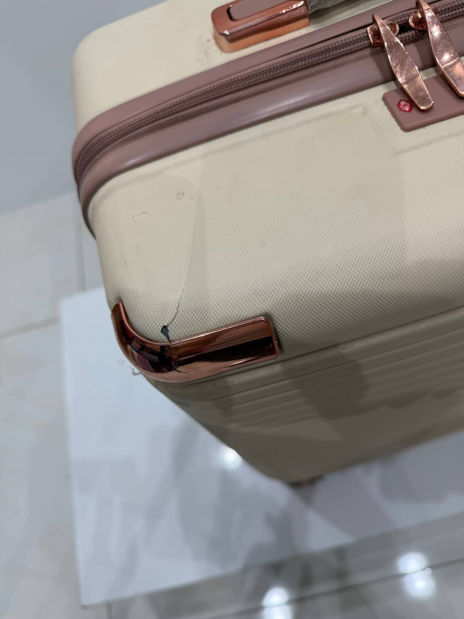 عکس محصولات با گوشی موبایل گرفته شده و هیچ ادیت روش انجام نشده❌ ایراد ظاهری محصول:قسمت بالای چمدان ترک جزئی دارد قسمت جلوی چمدان ضدگی دارد قسمت زیر چمدان ترک دارد❌