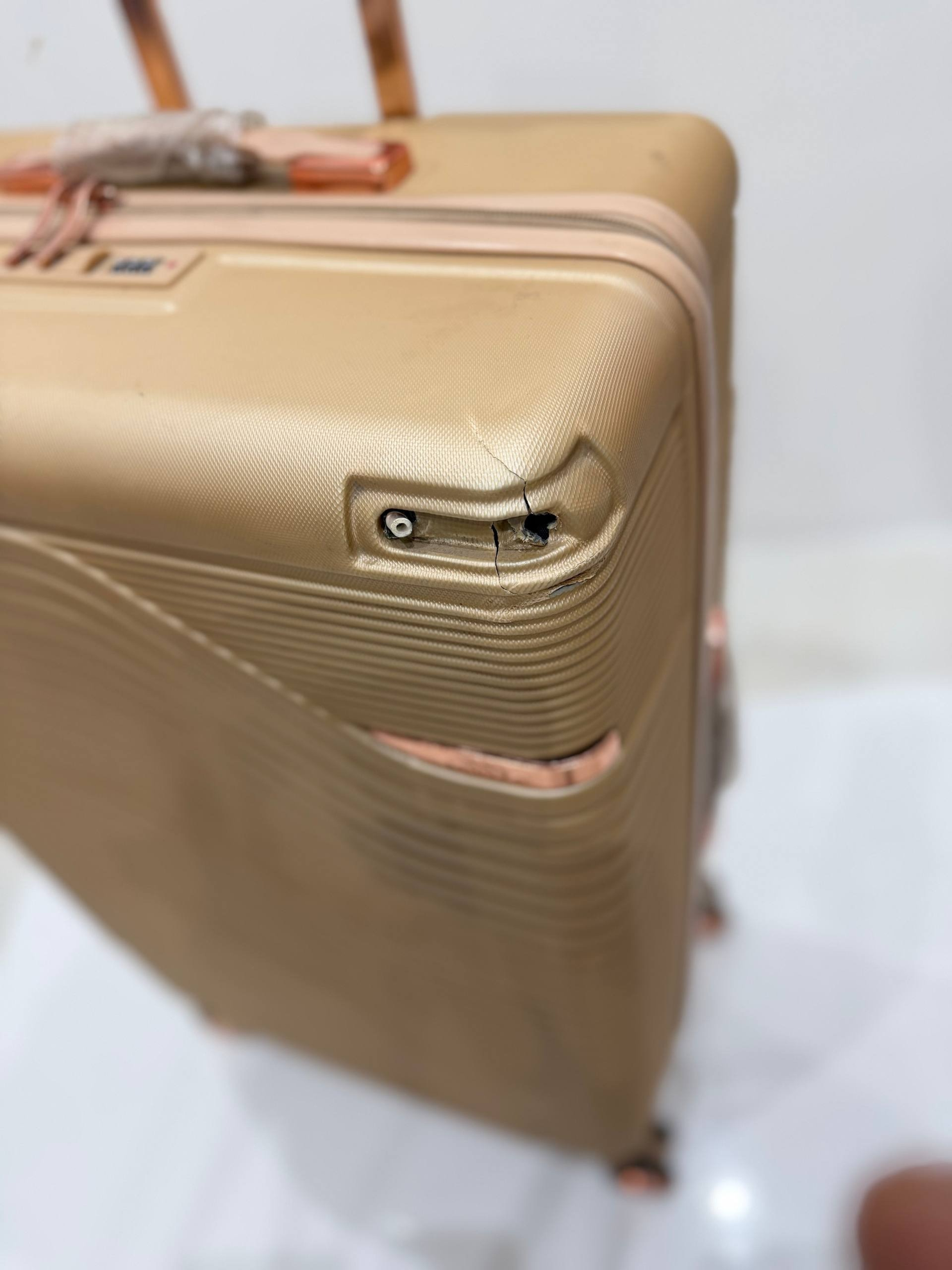 عکس محصولات با گوشی موبایل گرفته شده و هیچ ادیت روش انجام نشده❌ ایراد ظاهری محصول: قاب براق جلوچمدان شکستگی دارد قسمت داخل چمدان پارگی دارد❌