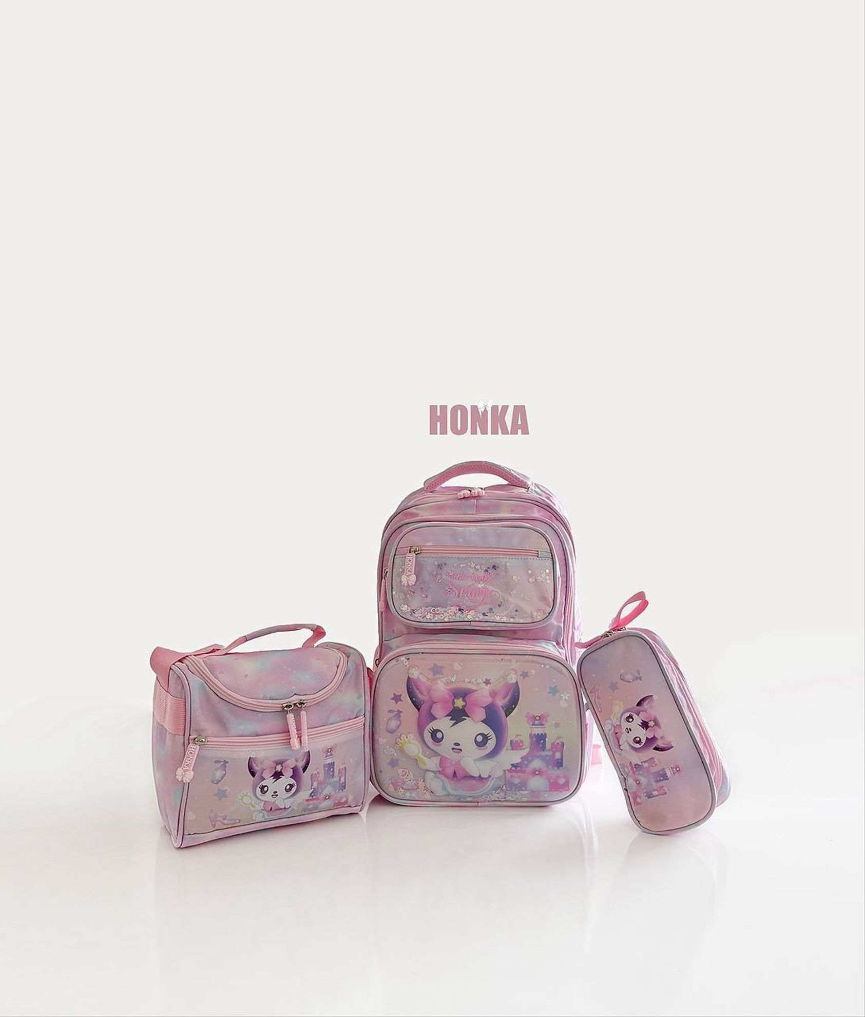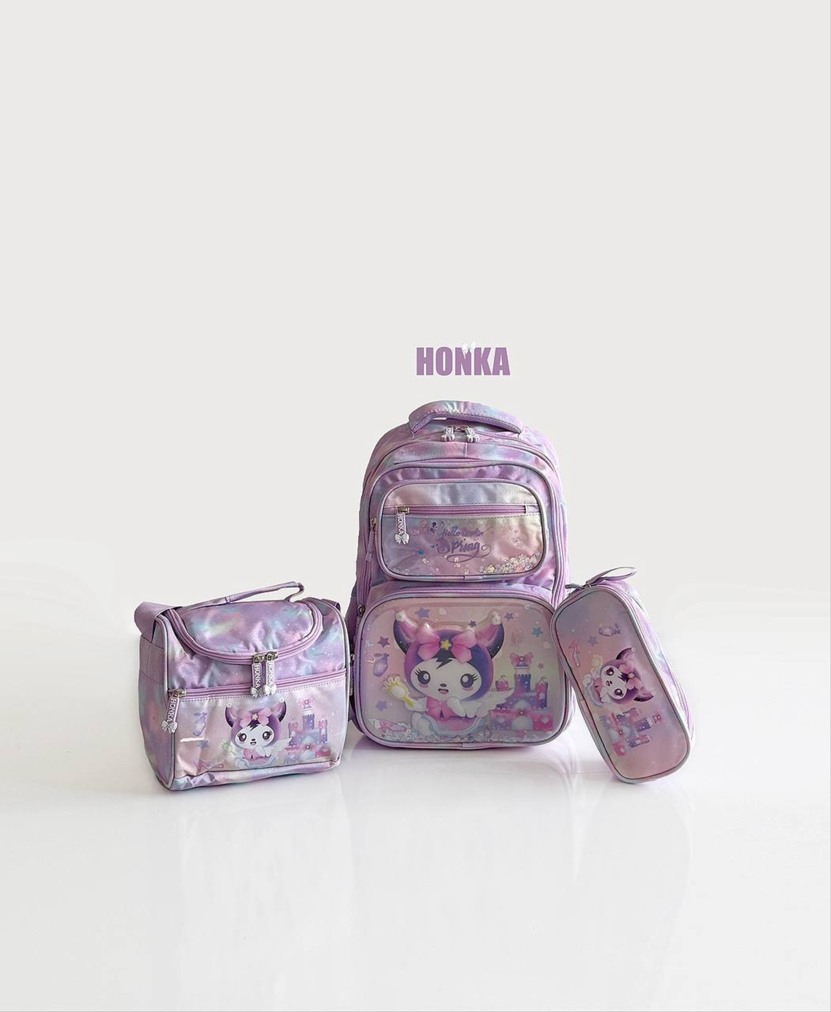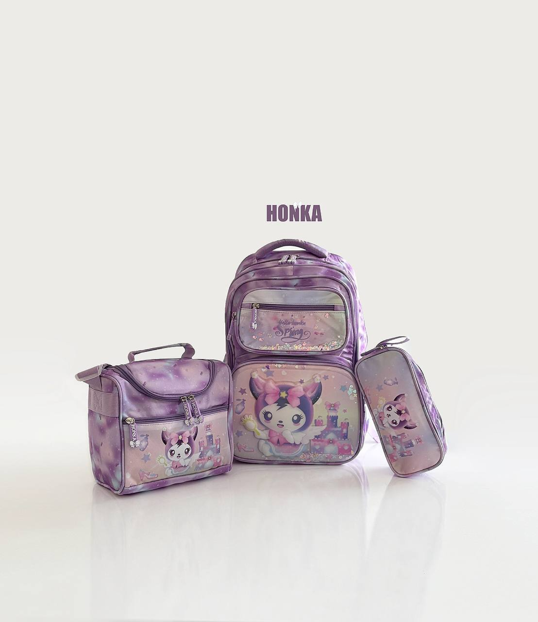 کوله سه تیکه طرح کرومی شامل یک قسمت اصلی چهار قسمت زیپ دار دو جیب قمقمه ای.یک عدد کیف دوشی به همراه جای مدادی