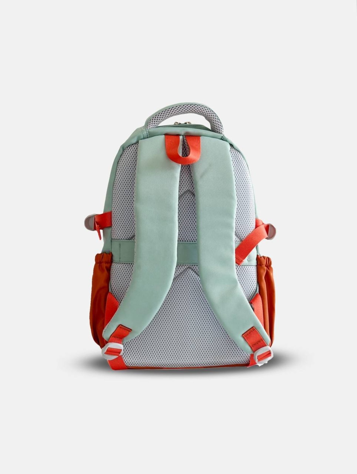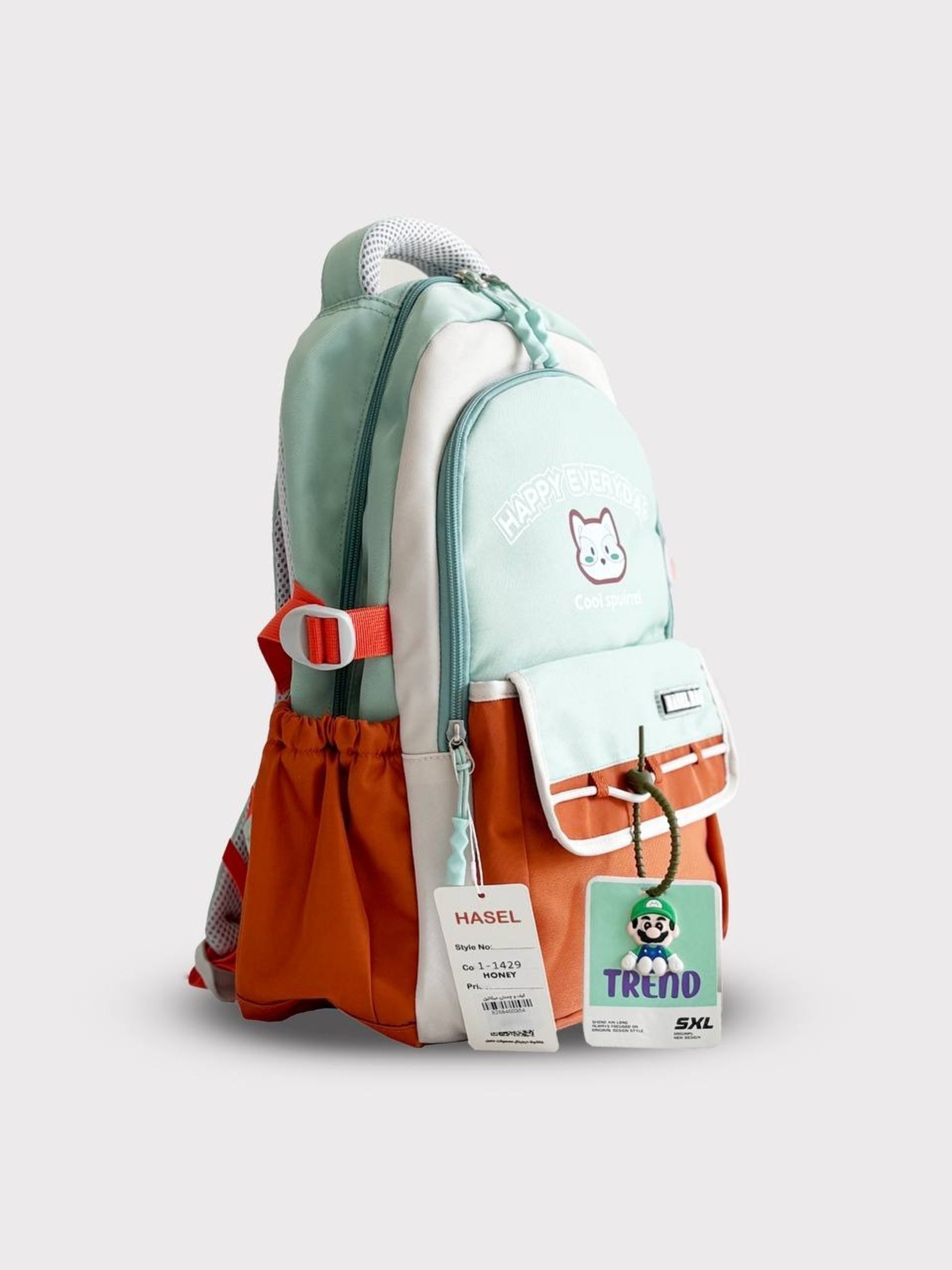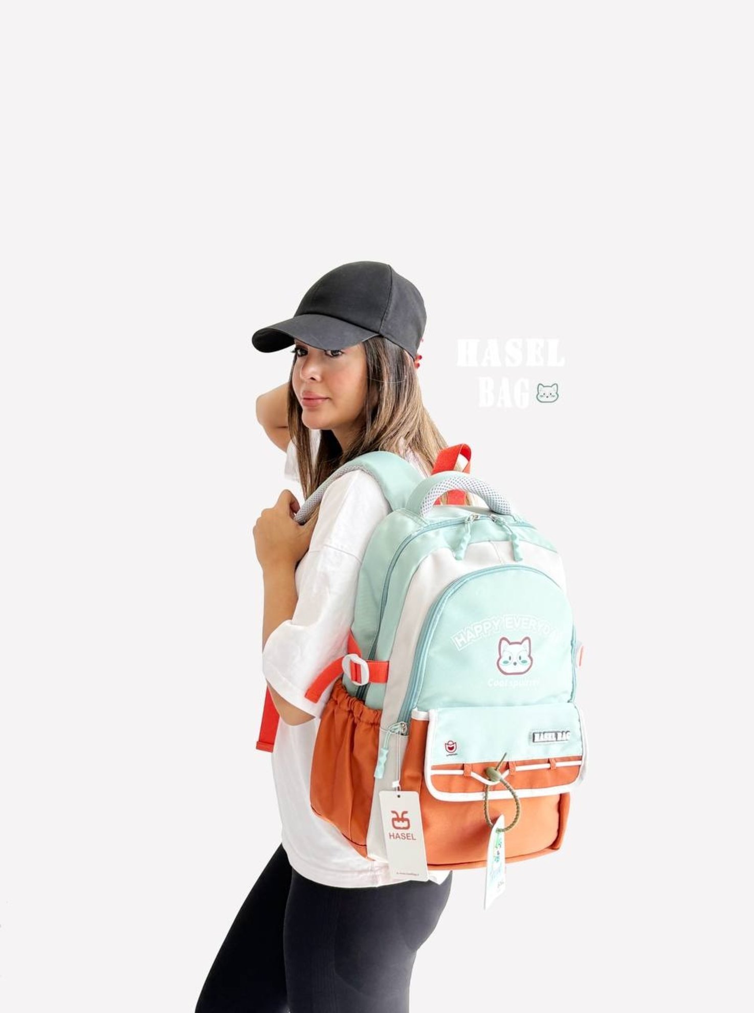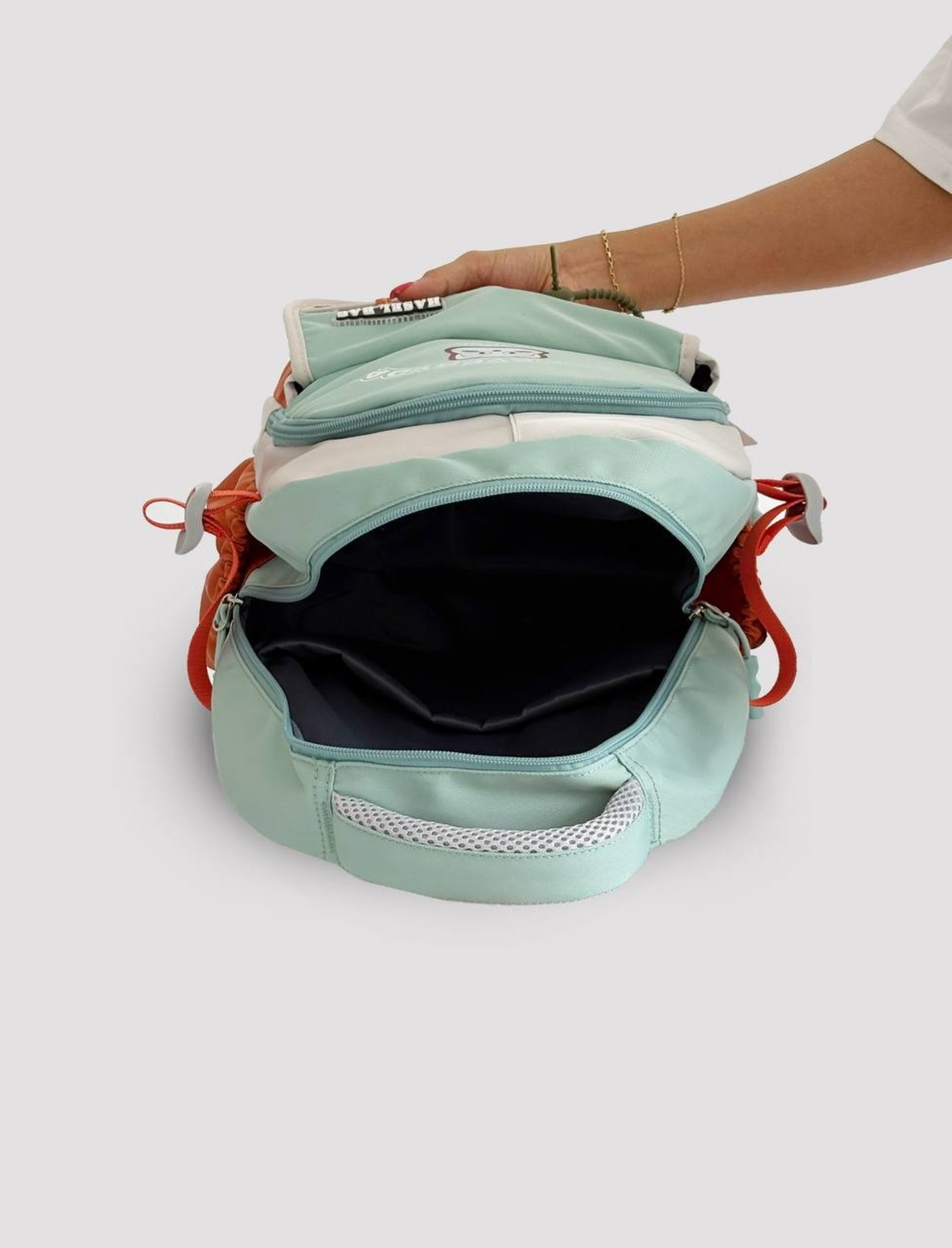 دارای یک قسمت اصلی ویک قسمت زیپ دار و یک جیب چسبی و دو جیب قمقمه ای
