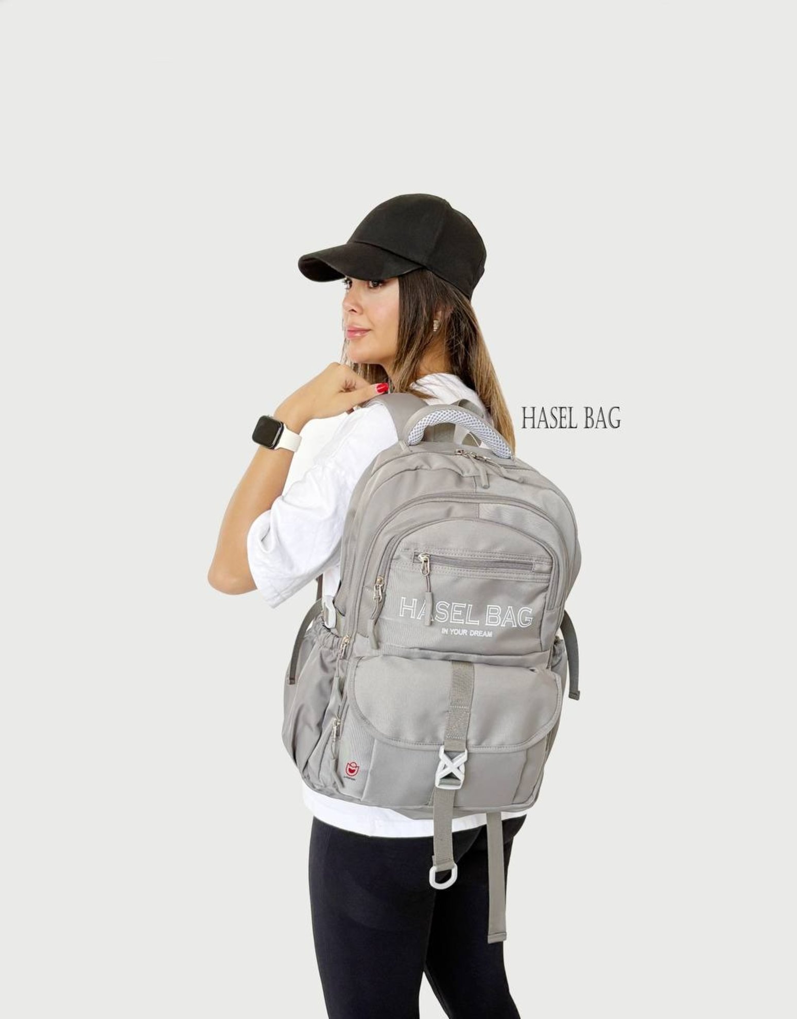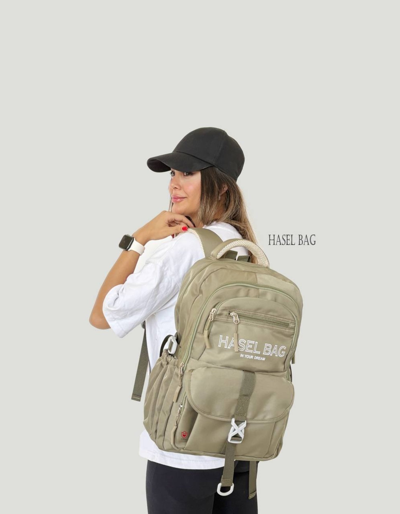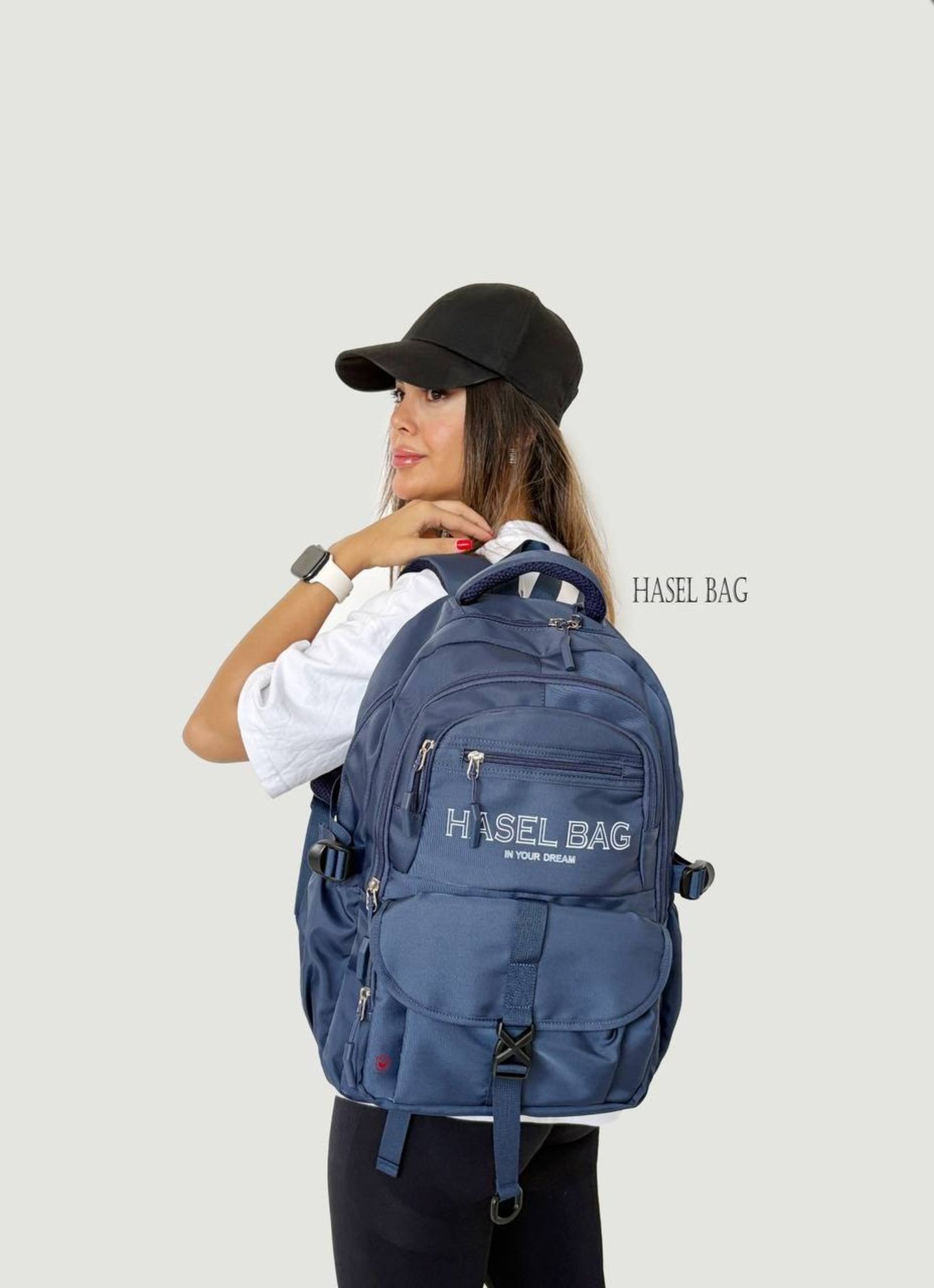 دارای یک قسمت اصلی و سه قسمت زیپ دار و یک جیب سکگی دو جیب قمقمه ای