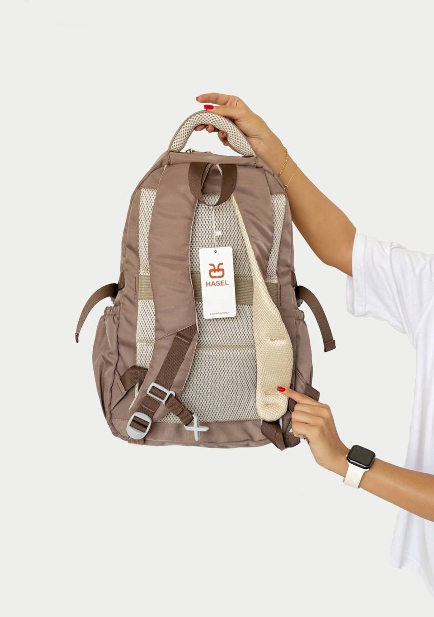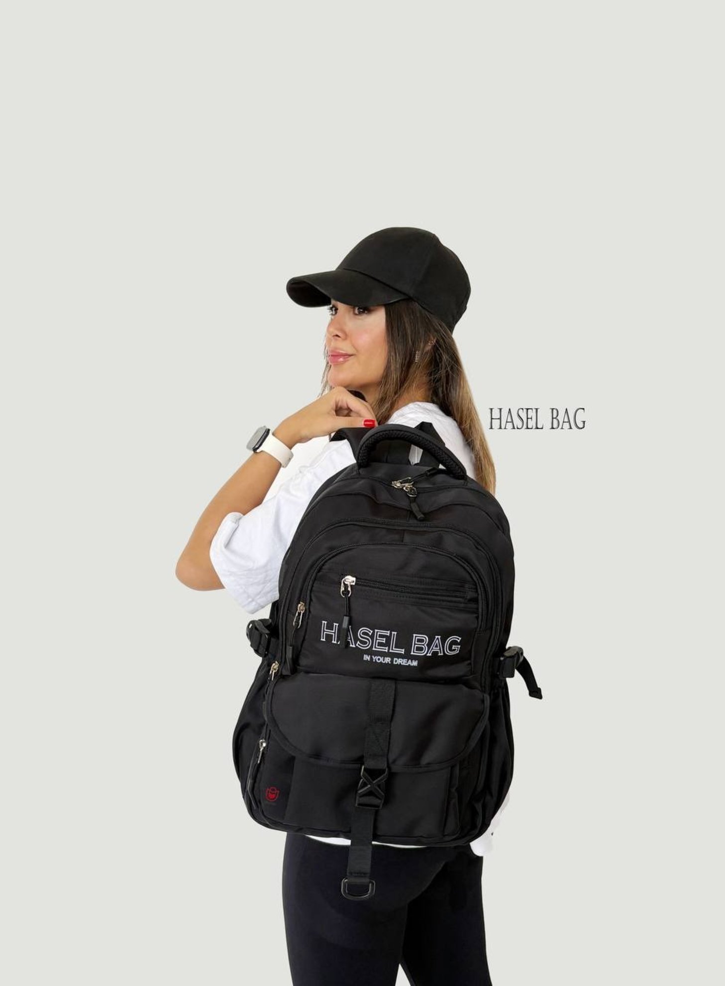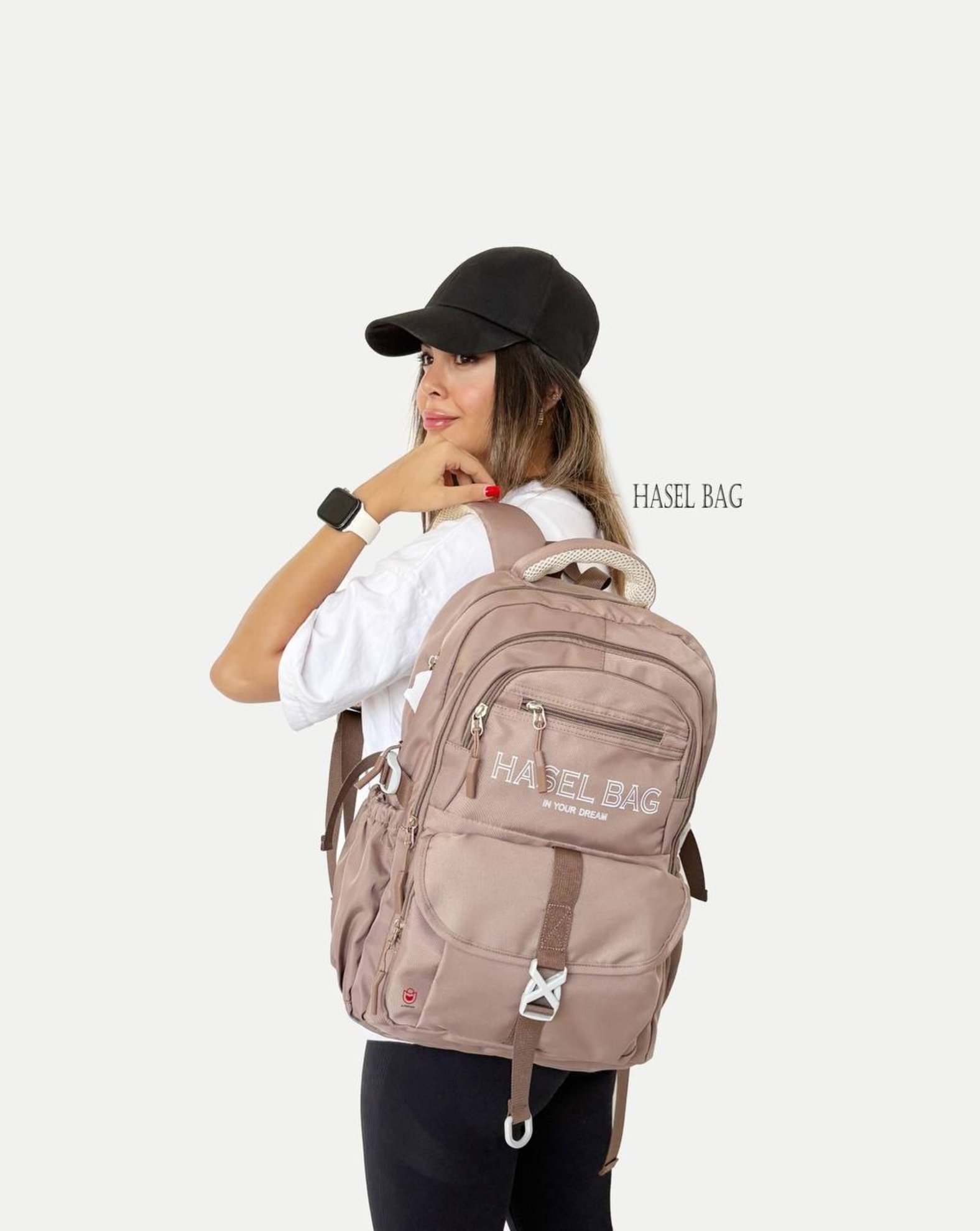 دارای یک قسمت اصلی و سه قسمت زیپ دار و یک جیب سکگی دو جیب قمقمه ای