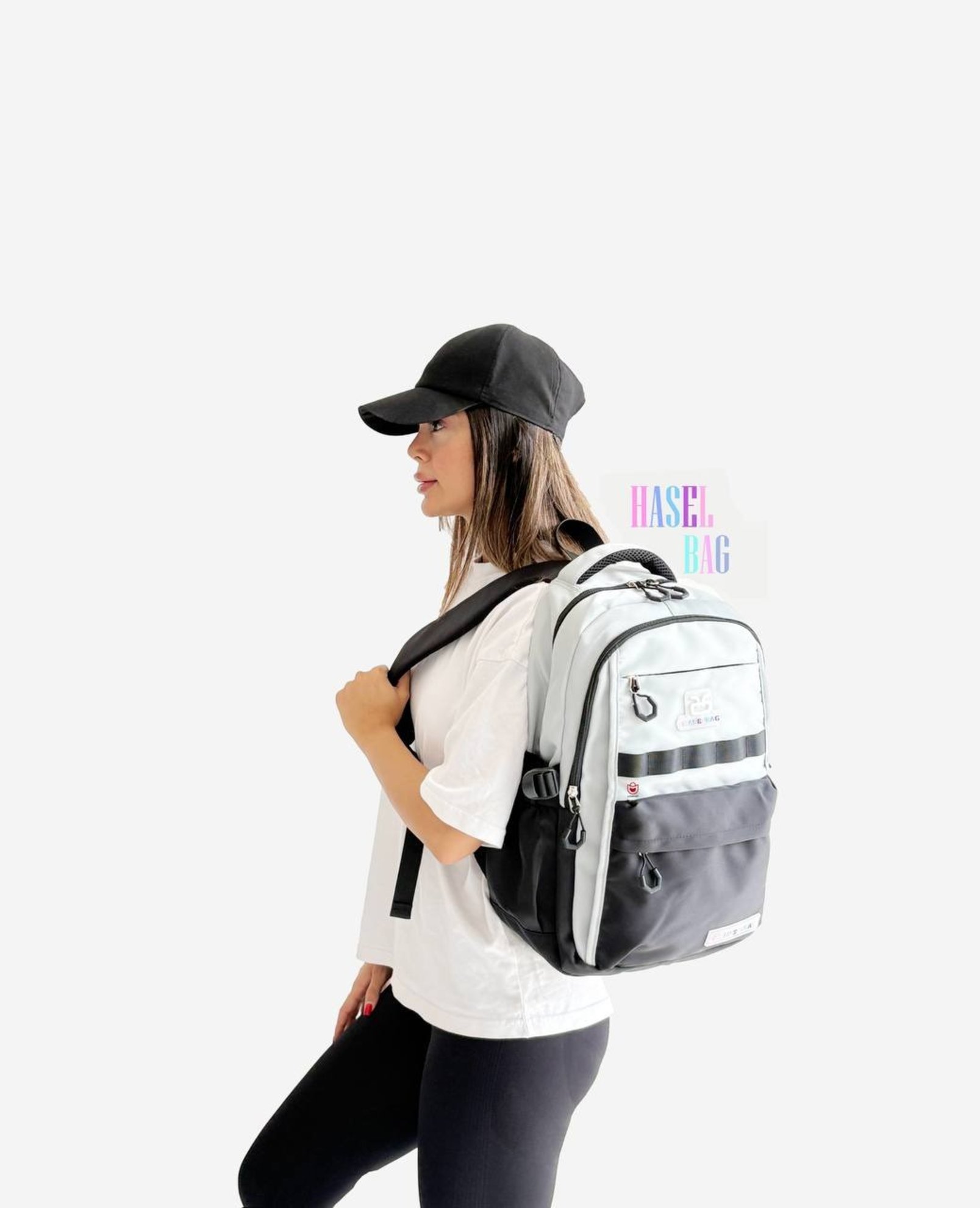 دارای یک قسمت اصلی و سه جیب زیپ دار و دو جیب قمقمه ای