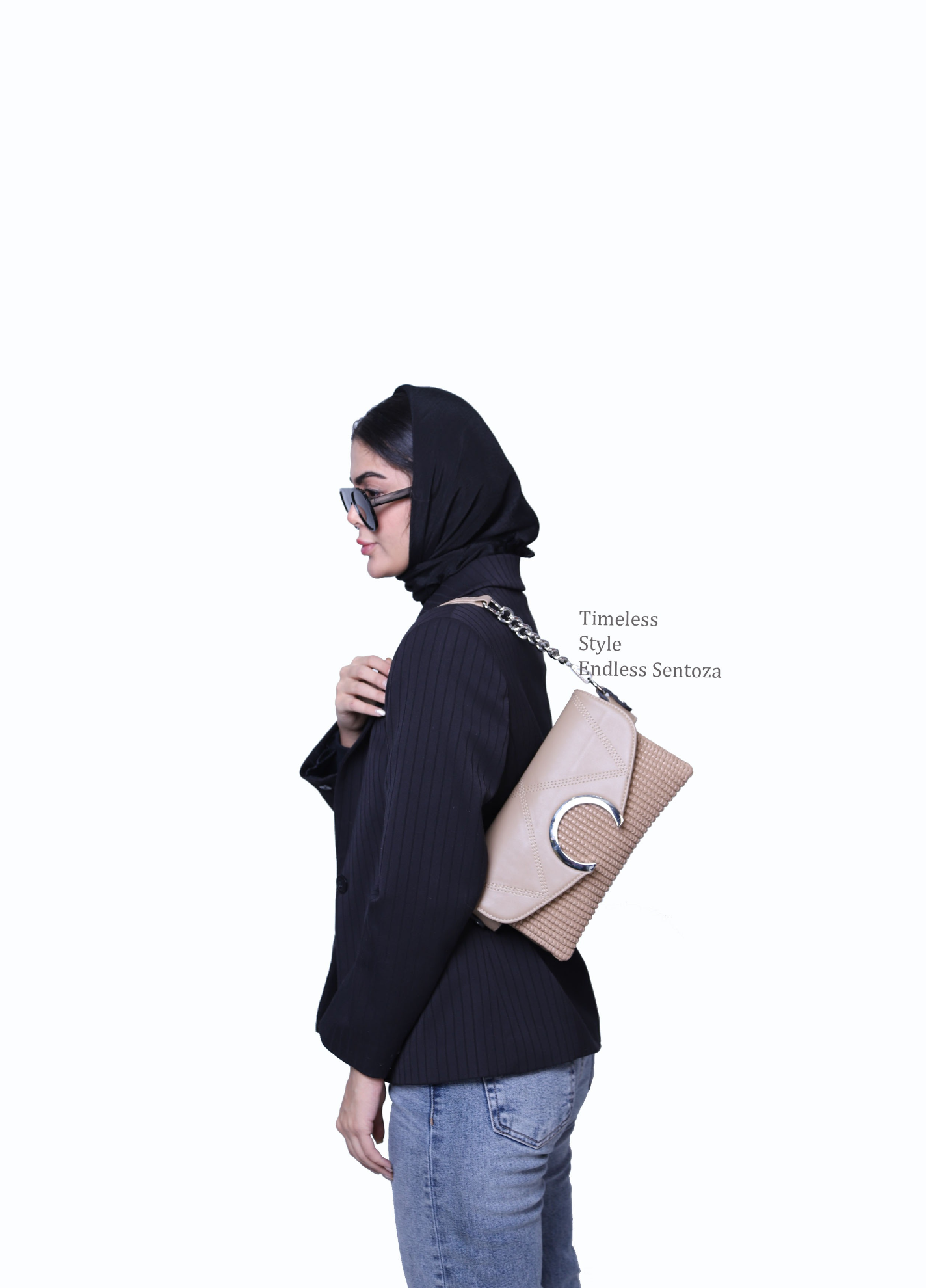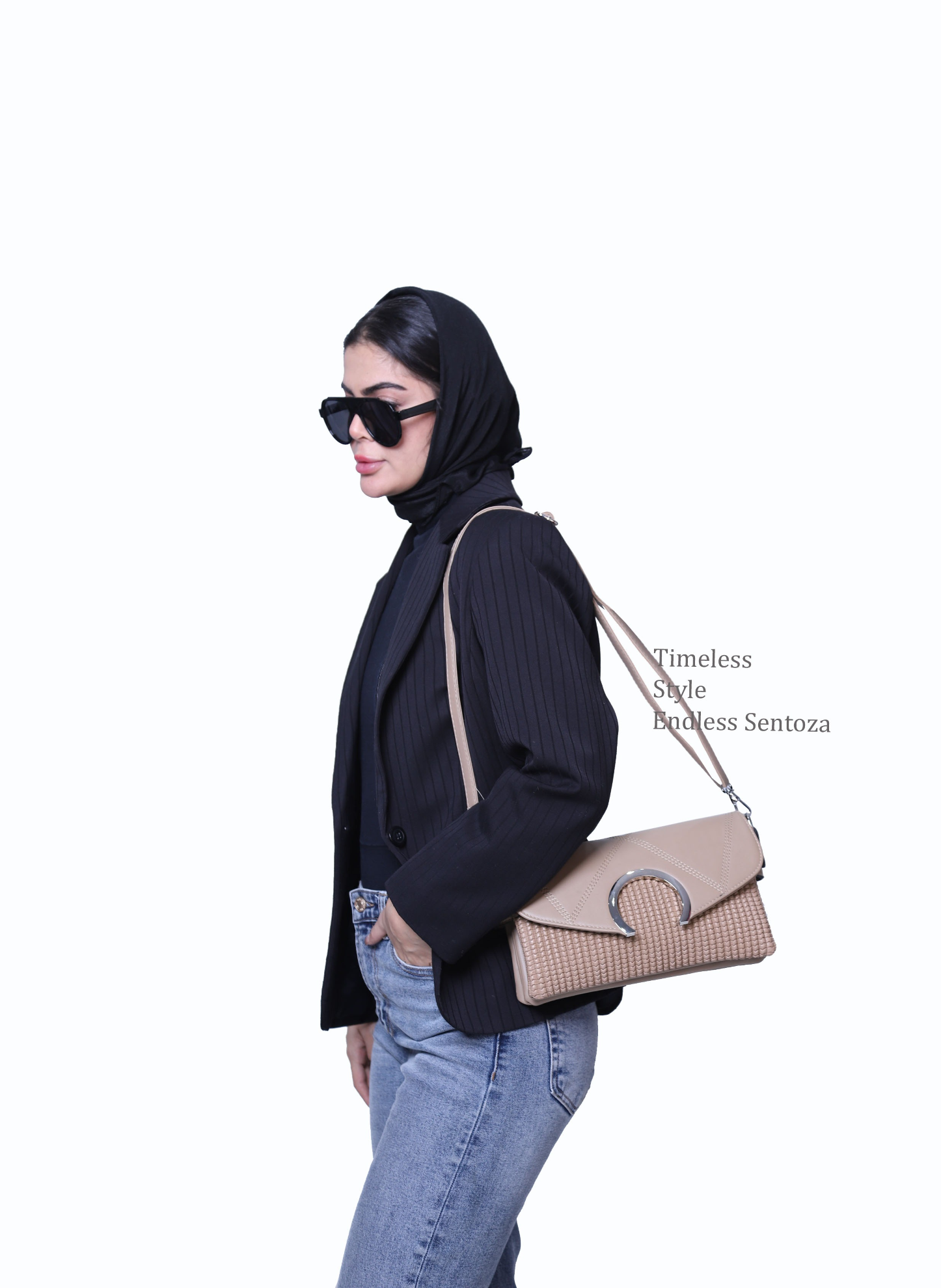 کیف دوشی زنانه چرم سنتوزا با خامه دوزی گندمی کد 957-S2