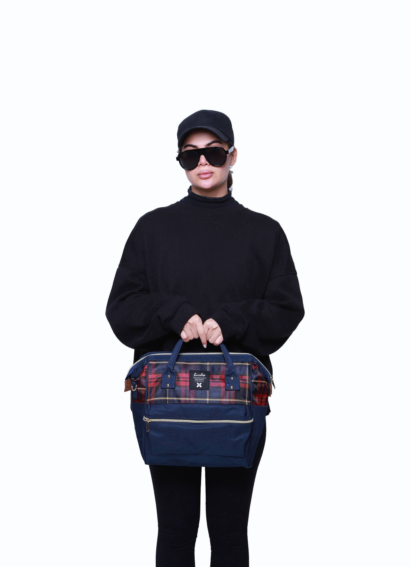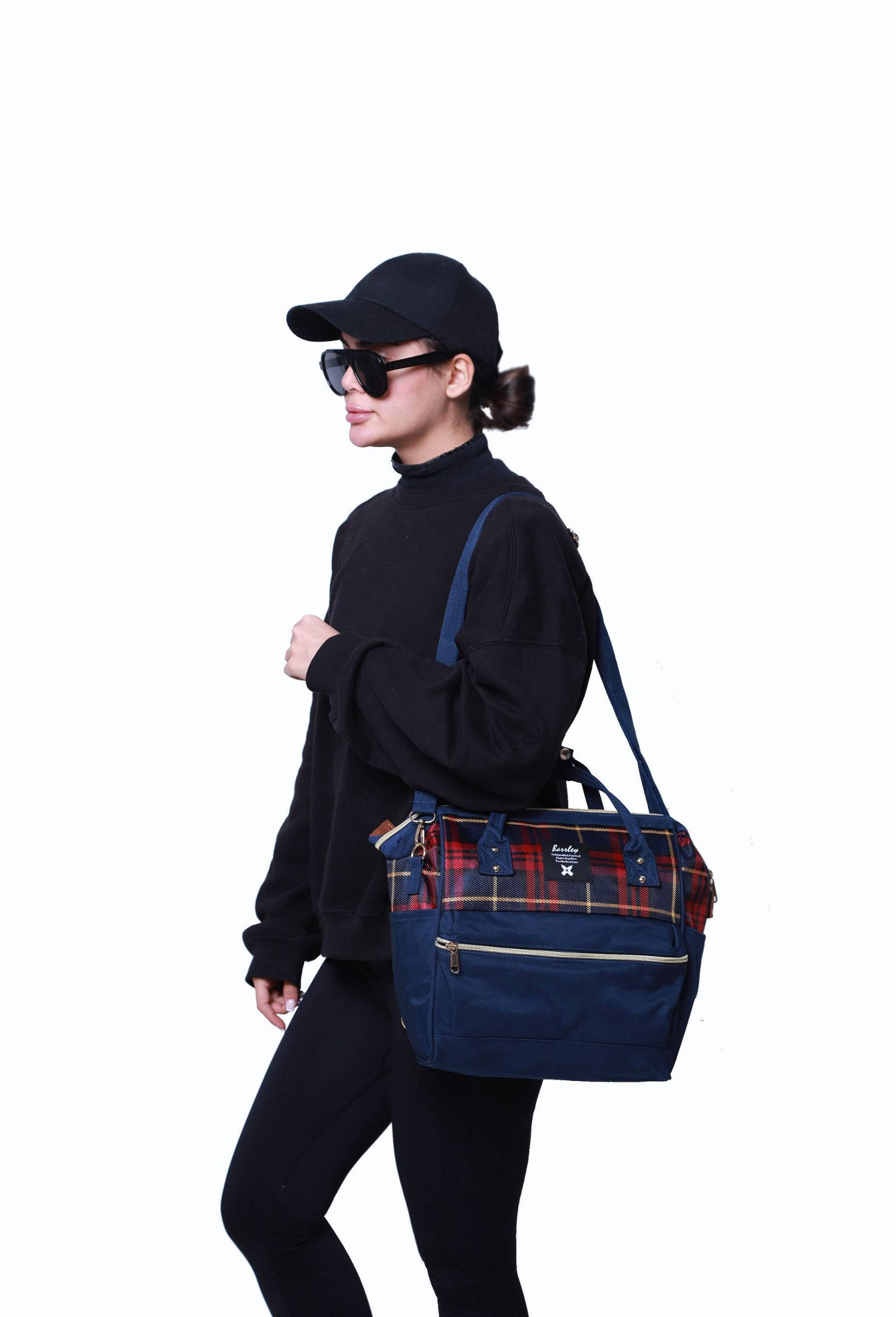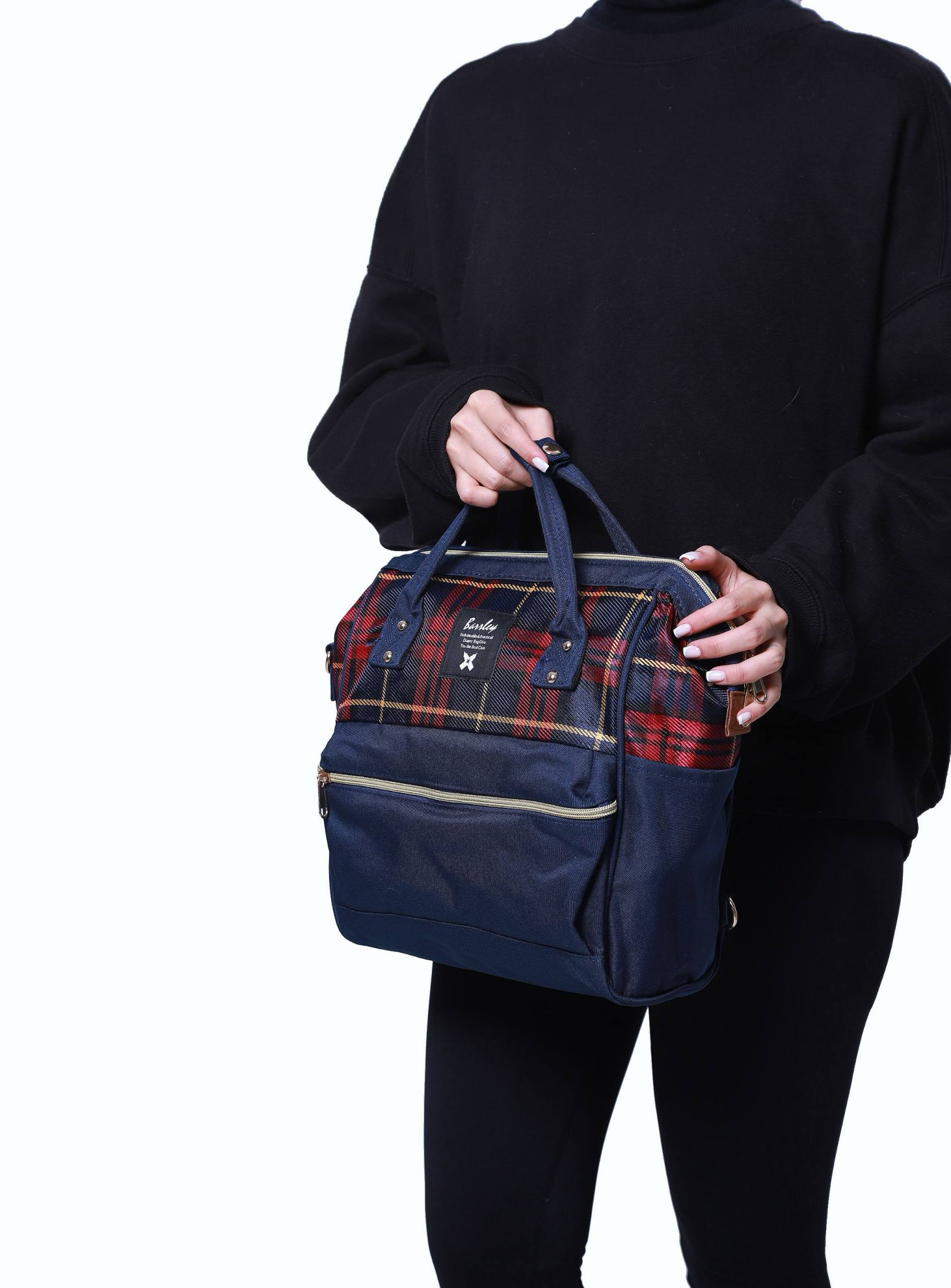 کیف مسافرتی سه کاره چهارخونه قرمز سرمه ای