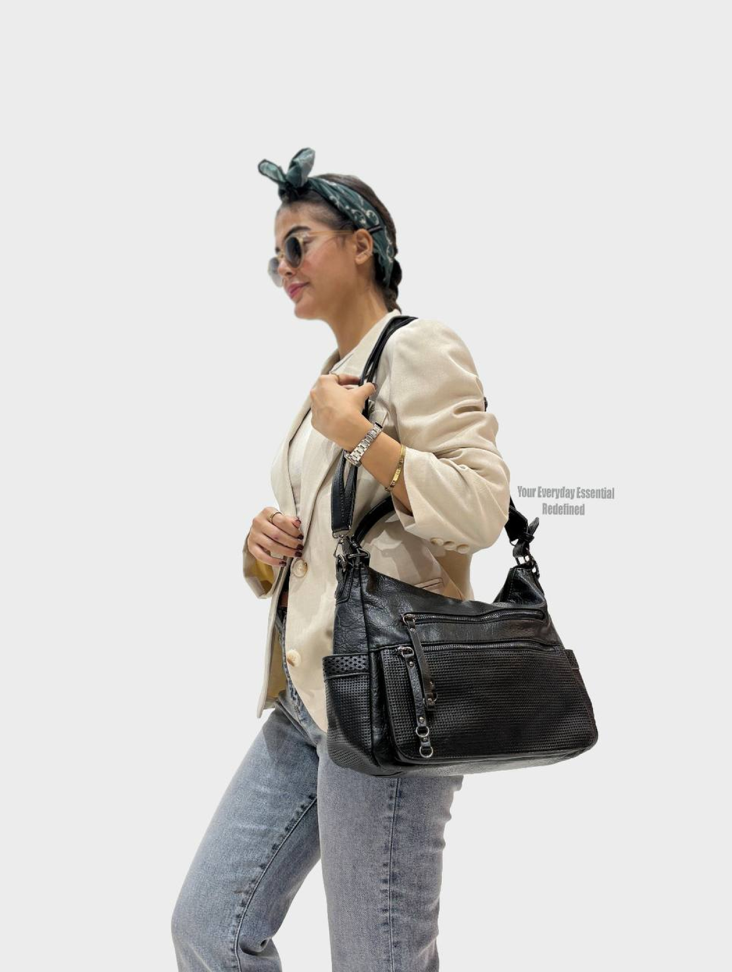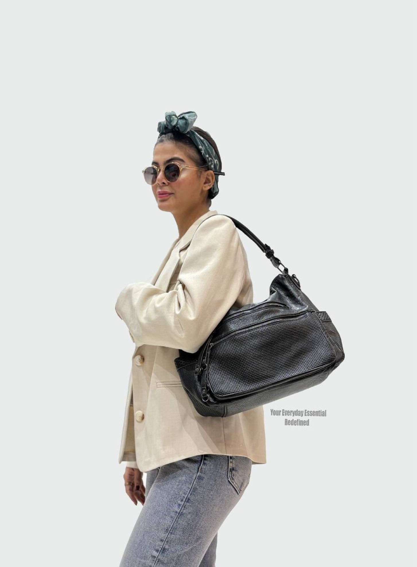 دارای بک بند دستی و یک بند بلند قابل تنظیم و جدا شو میباشد.